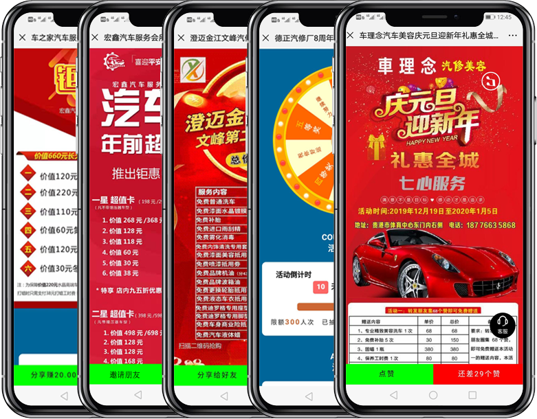 集满多少赞,就能免费领取或者低价购买;满多少人就能按照团购价购买;限时秒杀;抽奖等等活动; 每一种活动,你都能查看到参与者的活动轨迹;该客户是谁介绍的,谁在朋友圈推广了你的活动,这些你都可以看见。让你对活动了如指掌。